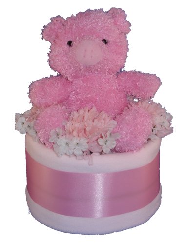 Cheap Pink Pig 1 Tier Diaper Cake w/ Pampers Swaddlers, 10" Stuffed Animal, and Precious Cargo Baby Apparel Review